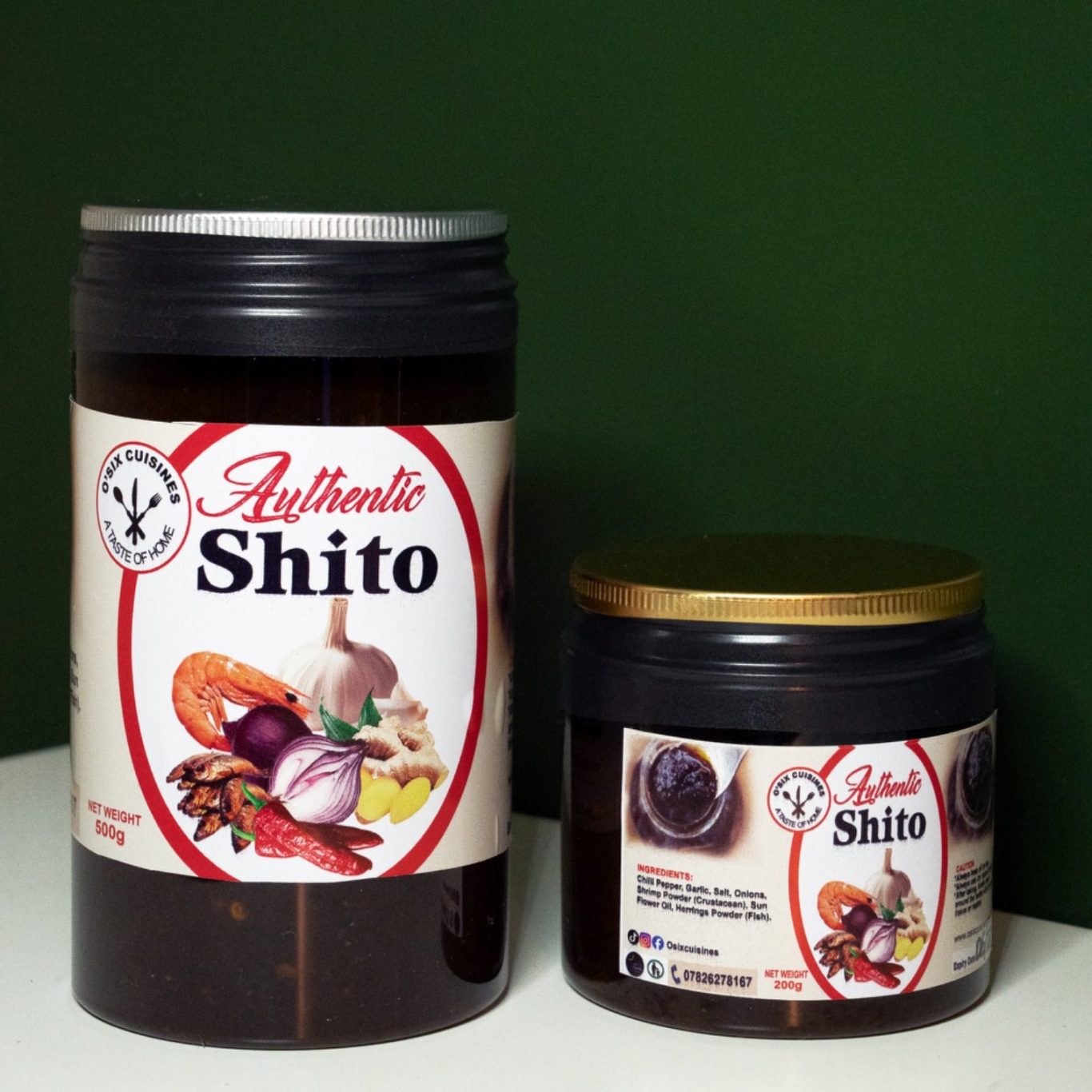 Ghana pepper sauce popularly known as Shito. Hygienically prepared with Ginger, Chilli Pepper, Garlic, Salt, Onion Shrimp Powder (Crustacean), Vegetable oil, Herrings powder (Fish). Taste so good and goes down well with kenkey, rice, banku and other meals.
